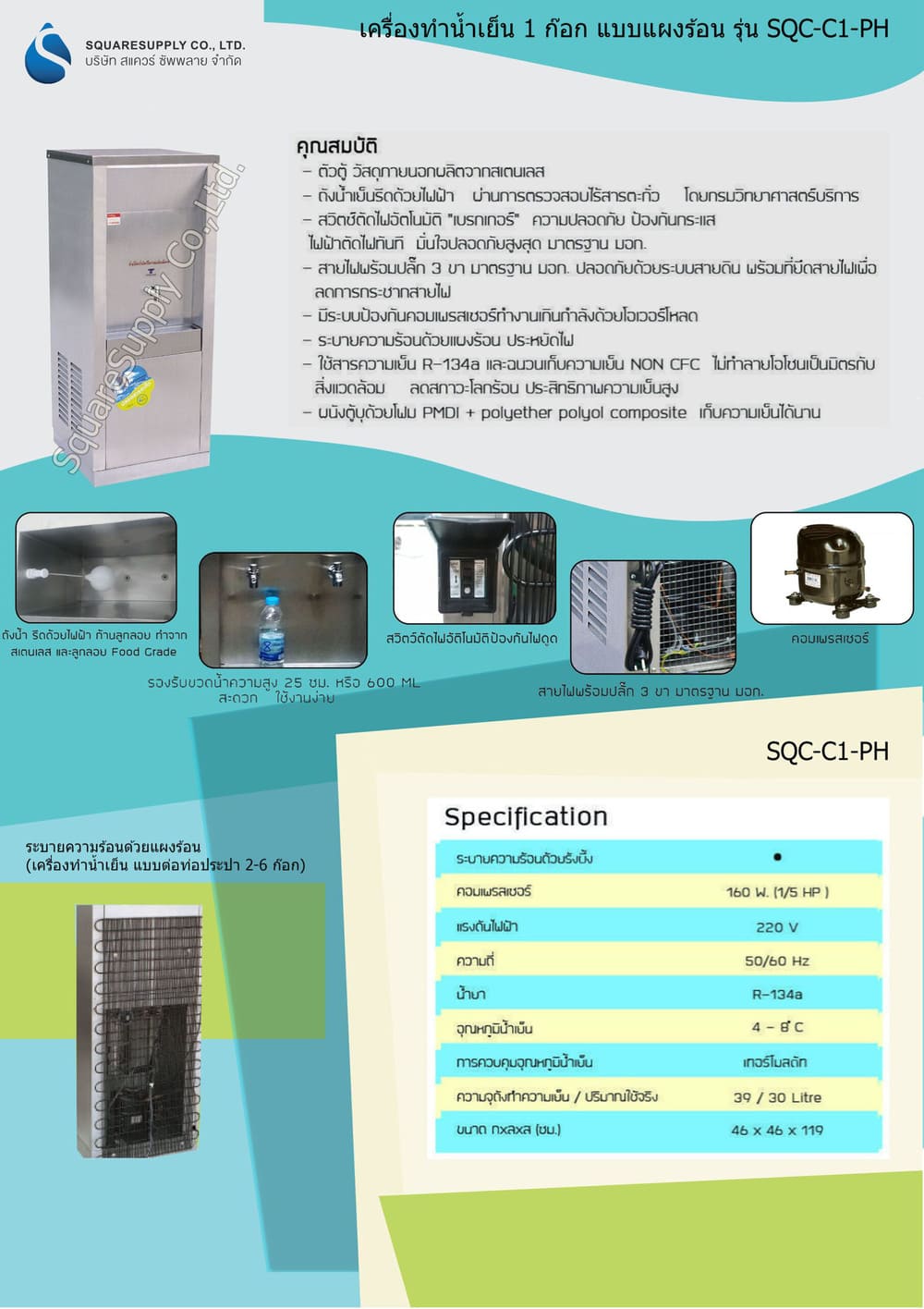ตู้ทำน้ำเย็น 1 ก๊อก แบบแผงร้อน รุ่น SQC-C1-PH