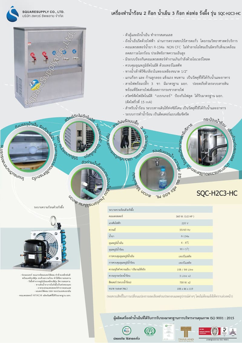 เครื่องทำน้ำร้อน 2 ก๊อก น้ำเย็น 3 ก๊อก ต่อท่อ รังผึ้ง รุ่น SQC-H2C3-HC